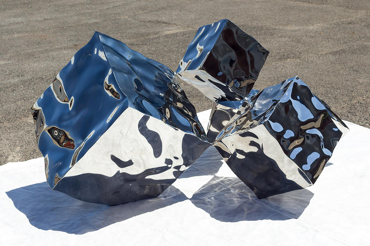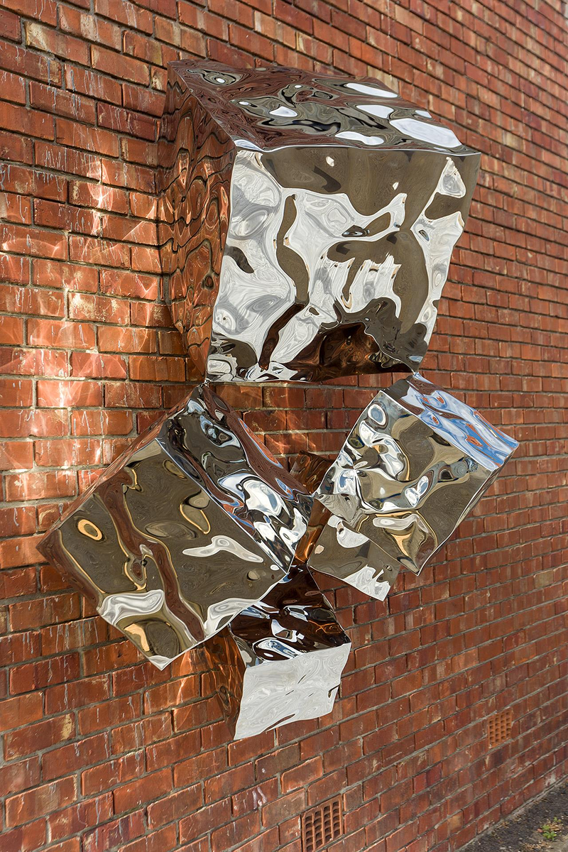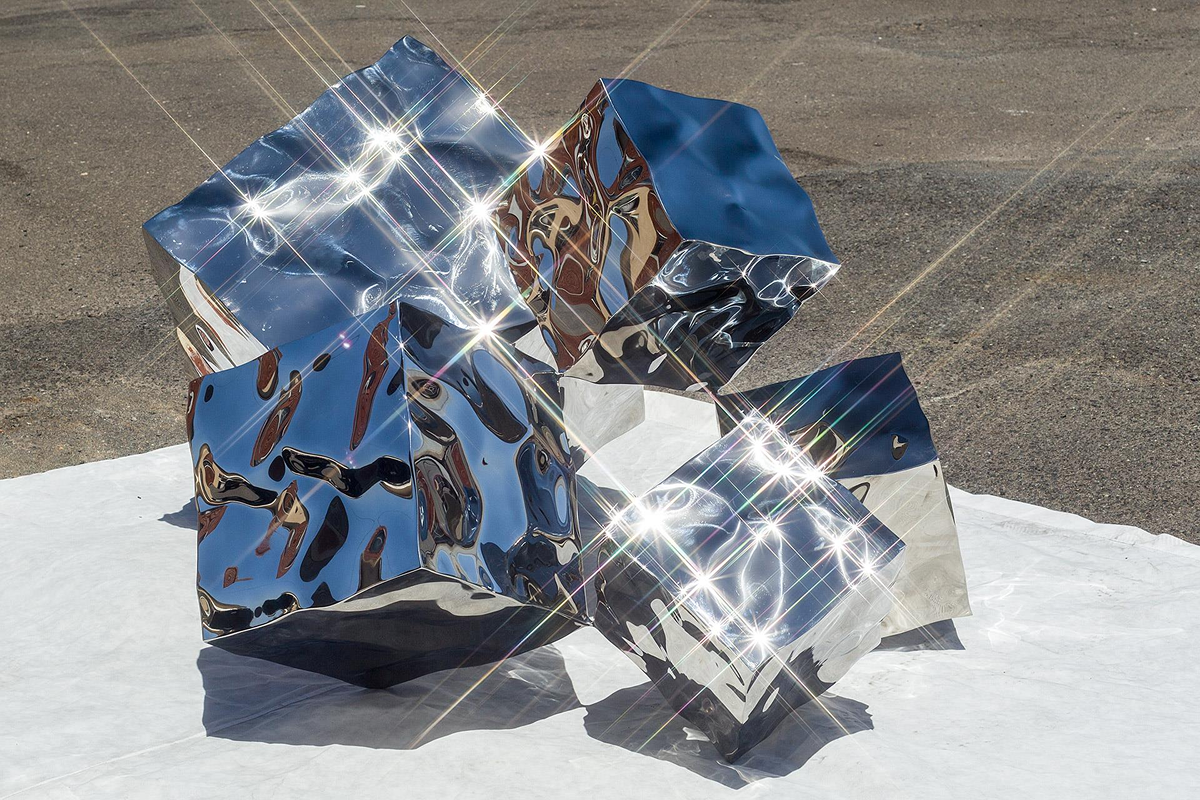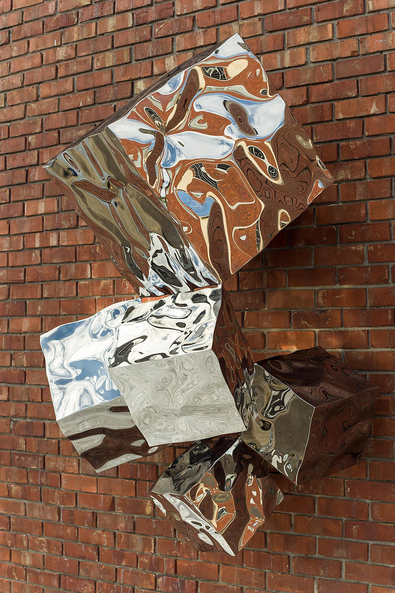 Emergence is a single, prismatic column rises with quiet certainty, its mirror-polished 316L stainless steel turning light into substance. The surface behaves like liquid mercury: sky, architecture and passers-by are stretched and folded into a continuously moving image. From afar the work reads as a clear architectural silhouette; up close, micro-ripples break highlights into a fine, shimmering grain. The sculpture doesn’t just occupy space—it edits it, making distance feel near and the solid appear weightless.
