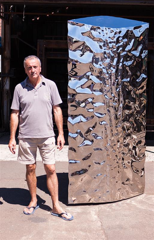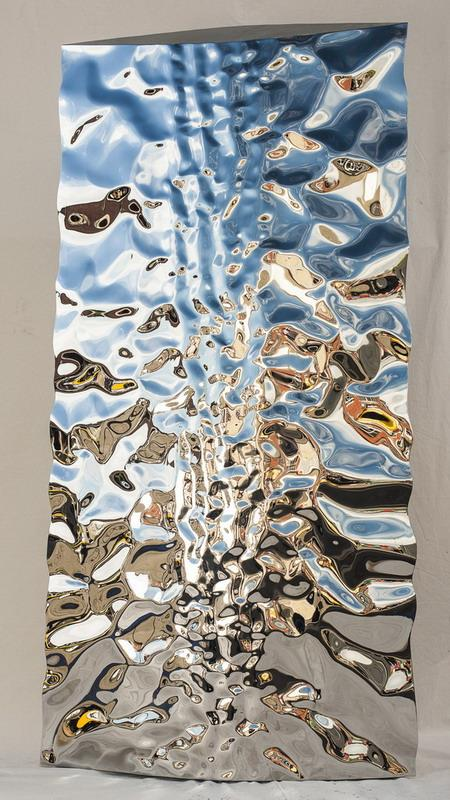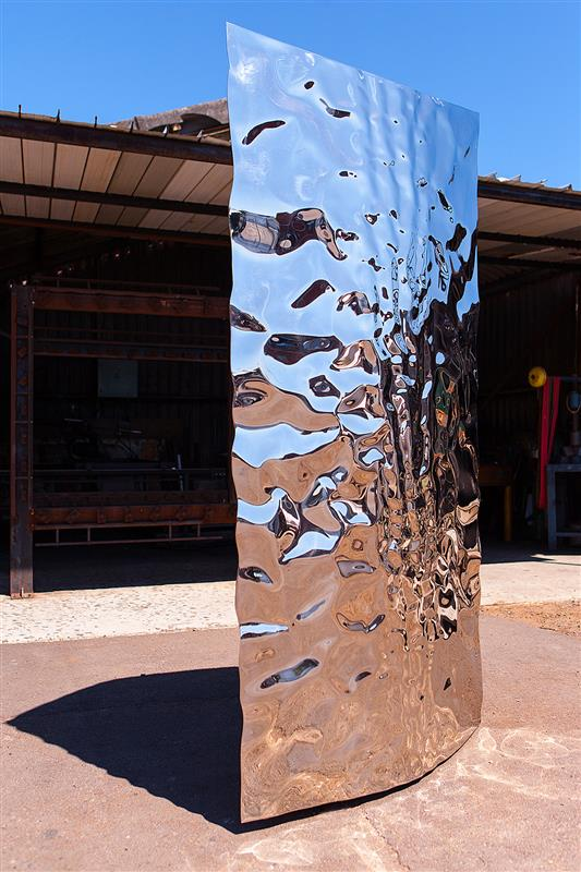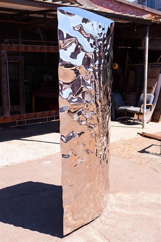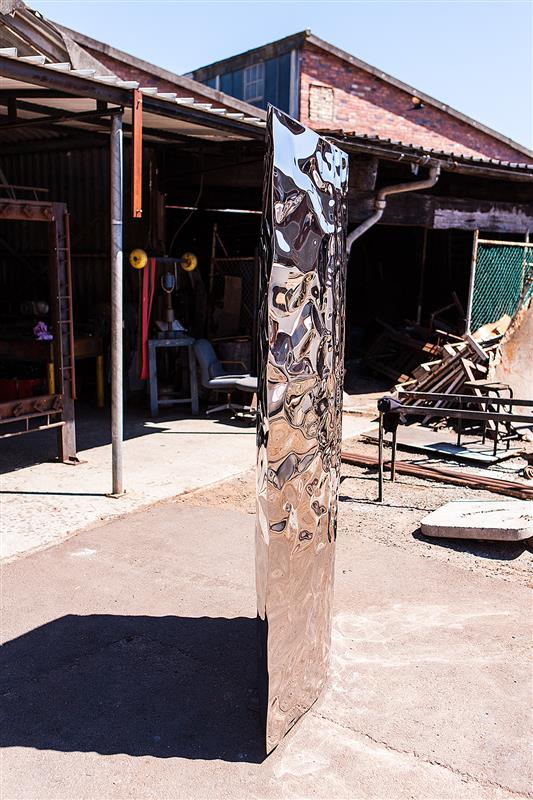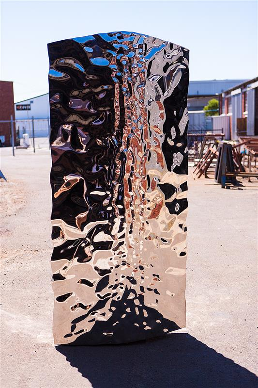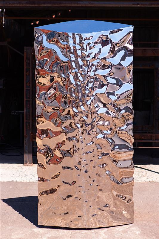 Install free-standing with full 360° access and at least 1 m of clearance around the sculpture. Neutral walls and soft, even lighting (3000–4000 K) allow the vertical ripples to read clearly without harsh glare. Monolith works especially well in galleries, lobbies and outdoor courtyards where its height and reflective field can engage with open space and changing light.