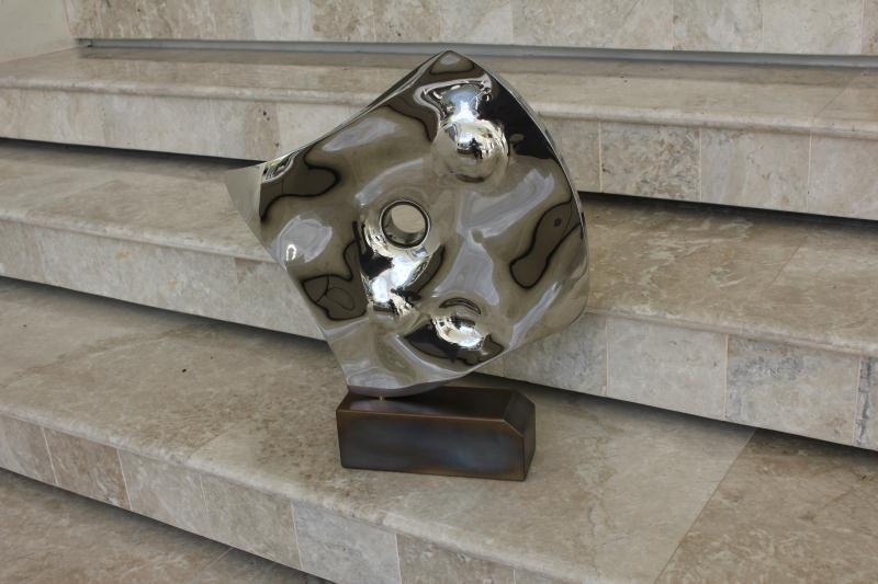 Penetration explores the idea of force meeting resistance. The polished steel surface appears as if pushed from within, capturing the moment when an invisible pressure breaks through a perfect plane. The work reflects the tension between softness and rigidity—an interaction where metal behaves like skin, stretching, bulging, and yielding without breaking. Each deformation becomes a frozen record of movement, questioning the boundaries between solidity and fluidity.